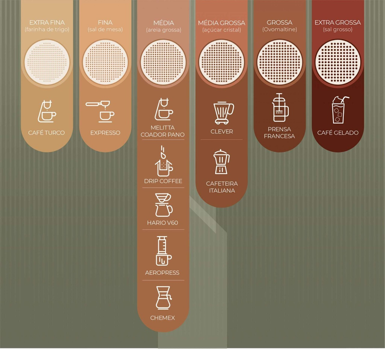 Para os métodos que possuem filtro de papel ou pano, qualquer moagem funciona.